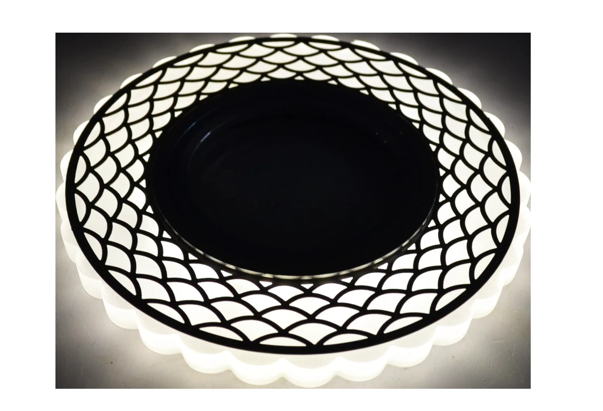 Šis dekoratīvais apgaismes ķermenis piesaista ar savu vizuāli rotaļīgo režģa rakstu, kas, apvienojumā ar izkliedēto gaismu, rada maigu un vienmērīgu apgaismojumu. Kad tas ir ieslēgts, gaismas atspīdumi caur ornamentēto virsmu veido harmonisku un nedaudz noslēpumainu noskaņu. Lieliski iederas modernā interjerā, kur svarīgas ir gan formas, gan gaismas nianses.