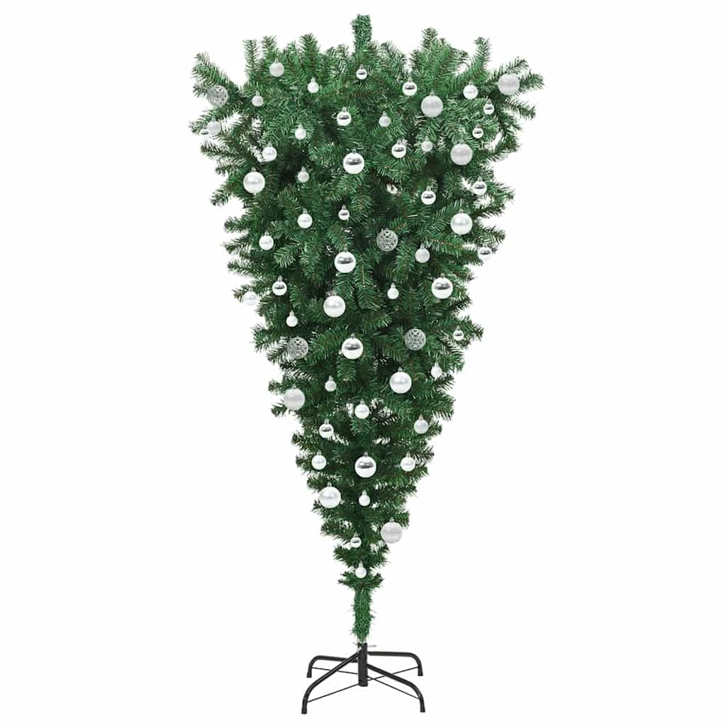 vidaXL Apgriezts mākslīgais iepriekšā gaismiņā Ziemassvētku koks ar bumbiņu komplektu