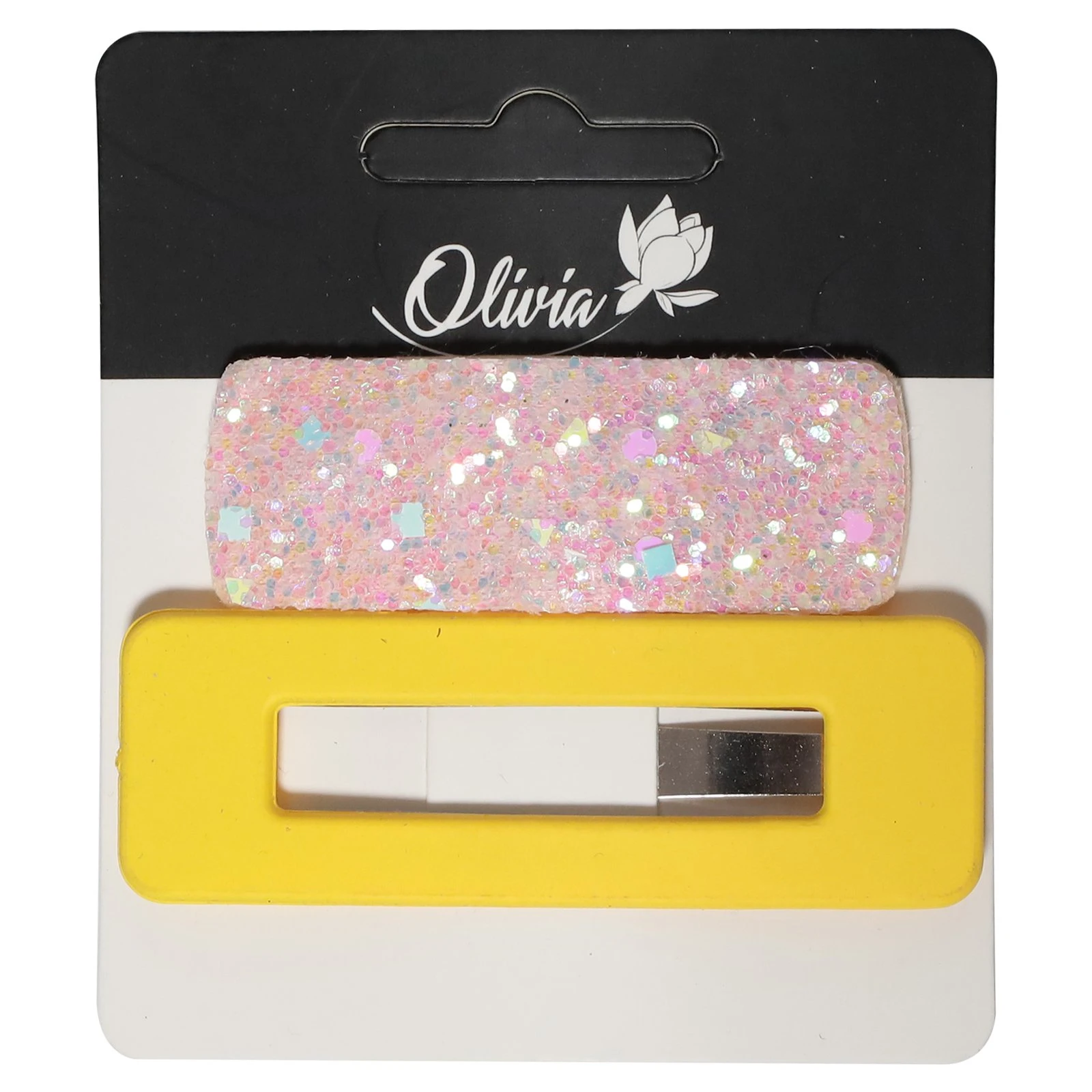 Stilīgas matu sprādzes, kas apvieno funkcionalitāti ar mūsdienīgu dizainu. Komplektā ietilpst dzeltena matu sprādze un sprādze ar spīdīgiem dekoriem, kas piešķir īpašu akcentu jebkurai frizūrai. Izgatavotas no kvalitatīva metāla ar izturīgu pārklājumu, šīs sprādzes droši notur matus, nebojājot to struktūru, un ir piemērotas ikdienai un svētkiem. Sprādzes ir viegli izmantojamas gan īsiem, gan vidēji gariem matiem.