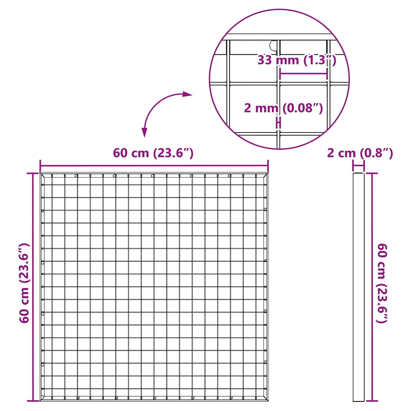 - Vispārējās izmēri: 60 x 60 x 2 cm (G x P x A)