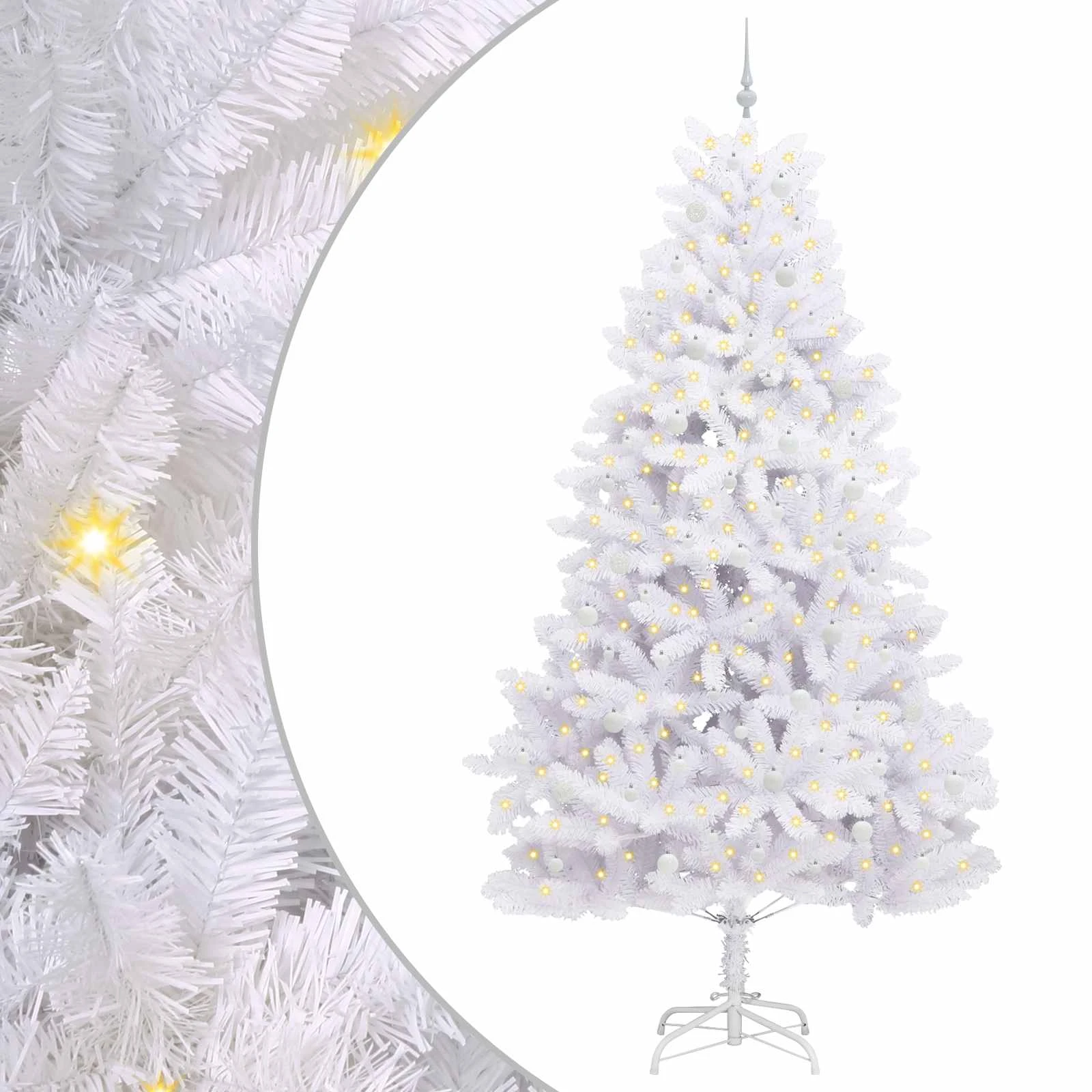 - Materiāli: Šis mākslīgais koks ir izgatavots no augstas kvalitātes PVC un izturīgas tērauda, kas nodrošina izturību un reālistisku izskatu katru sezonu. PVC ir maigs un reāls kā eglīte, bet tērauds piešķir stabilitāti, padarot koku gan uzticamu, gan pievilcīgu.