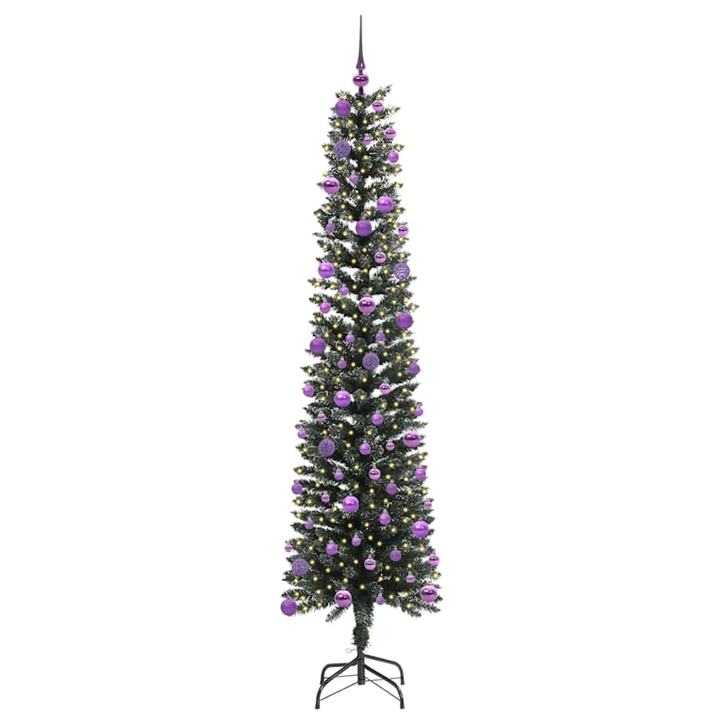 vidaXL Mākslīgā iepriekš izgaismotā Ziemassvētku egle ar bumbiņu komplektu