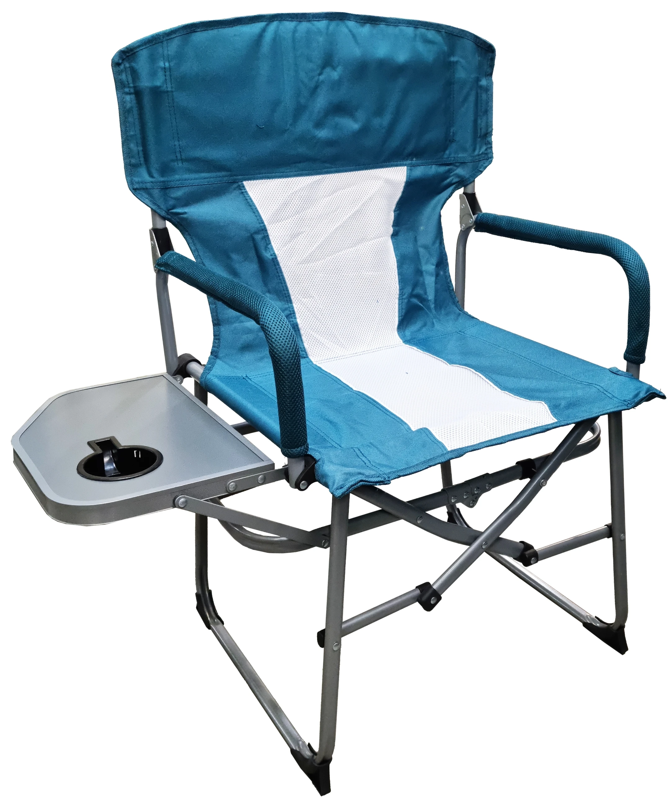 Saliekams kempinga krēsls ar iebūvētu galdiņu, krūzes turētāju un roku balstiem. Sēdvieta izgatavota no poliestera, rāmis no metāla. Krēsla platums 52.5 cm, augstums 92.5 cm.