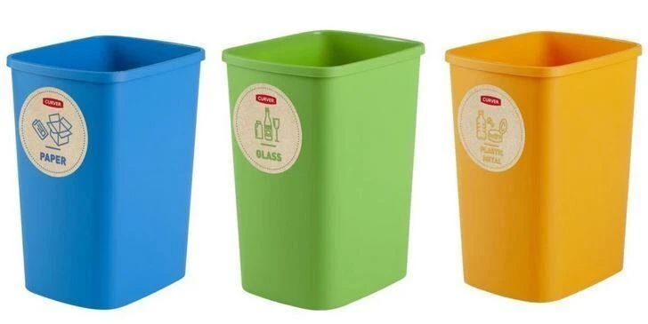 Zīmols - Curver. Garums - 19 cm. Platums - 23.5 cm. Augstums - 36.5 cm. Tilpums - 9 l. Krāsa - Zila. Dzeltena. Zaļa. Materiāls - Plastmasa. Ar vāku - Nē. Ar pedāli - Nē. Garantija - 24 mēn. Papildu informācija - Šķirošanas atkritumu tvertnes komplekts 3 x 9 l. Papīram, plastmasai un stiklam.