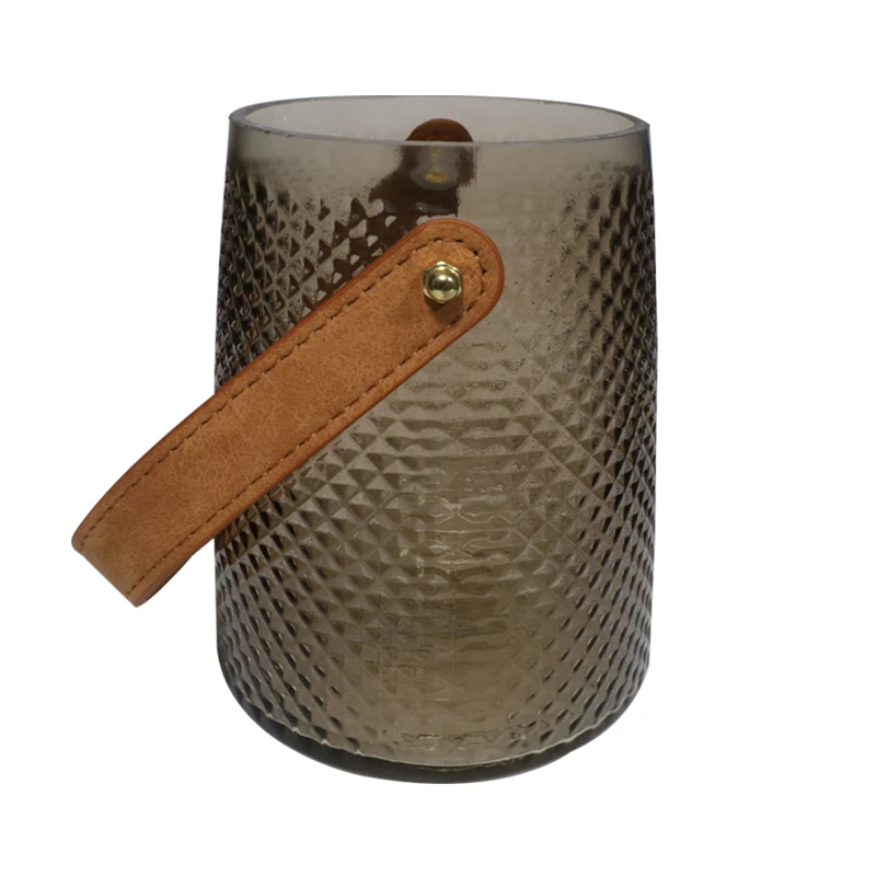 Vāze-svečturis stikla ar ādas rokturi 10.5x15.3cm, dūmakaini brūna