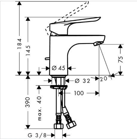 Zīmols- Hansgrohe. Montāžas tips- Stiprināms uz virsmas. Garums- 12.3 cm. Platums- 4.5 cm. Svars- 1.70 kg. Augstums- 14.5 cm. Krāsa- Hroma. Materiāls- Misiņš. Savienotājs- G3/8. Kārtridžs/sajaukšanas sistēma (kārtridžs)- 3.5 cm. Caurplūdes koeficients- 5 l/min. Rokturu skaits- 1. Ar dušas šļūteni- Nē. Izvelkamas galvas- Nē. Elastīgas galvas- Nē. Ar dušas galvu- Nē. Pamatnes vārsts komplektā- Nē. Obligātā garantija- 24 mēn. Komplekts- Šļūtenes (2 gab.)..