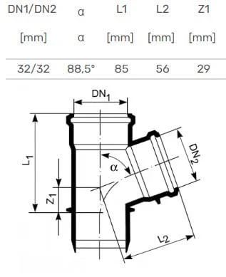 Kanalizācijas caurules trejgabals Magnaplast D32mm. 88.5° PP