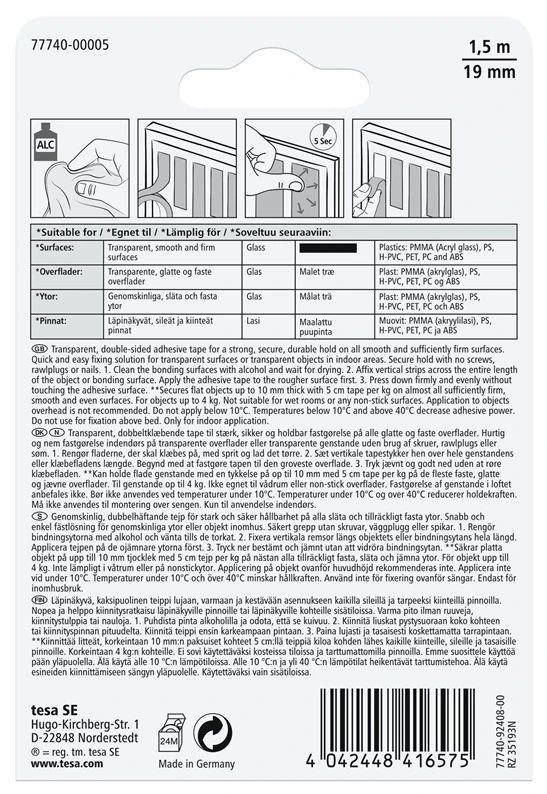 Divpusēja līmlente Tesa tesa. caurspīdīga