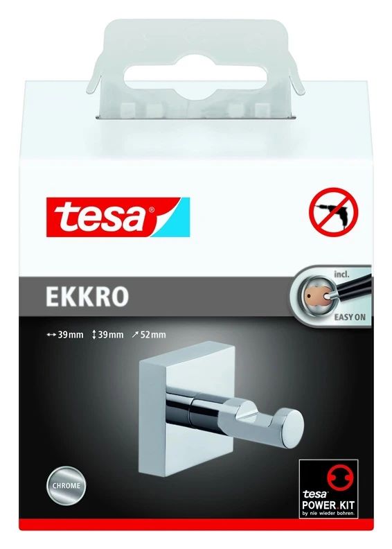 Zīmols- Tesa. Garums- 52 mm. Platums- 39 mm. Augstums- 39 mm. Krāsa- Hroma. Materiāls- Metāls. Stiprinājums- Līmējošs. Obligātā garantija- 24 mēn. Papildus informācija- Tesa Power Kit Līme: Uzmanību! Lietošanas rezultātā var veidoties bīstami ieelpojami putekļi. Neielaist putekļus..