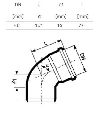 Preču zīme- Magnaplast. Modelis- HTplus. Santehniskā savienojums. diametrs- 40 mm. 40 mm. Nolieciena leņķis- 45 - 45°. Elastīgs- Nē. Materiāls- Polipropilēns (PP). Krāsa- Balta. Paredzēts lietošanai- Iekšējai kanalizācijai. Papildu informācija- Izgatavots no 100% pārstrādājama polipropilēna..