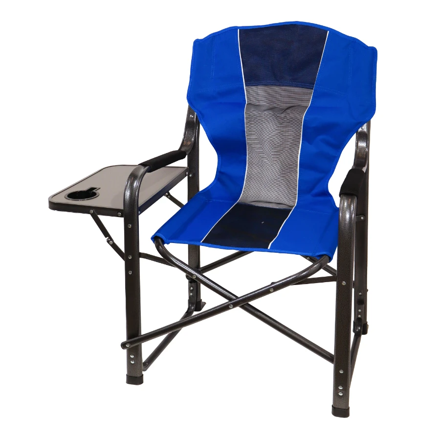 Besk saliekamais krēsls atpūtai, makšķerēšanai, kempingam vai piknikam. Tā metāla rāmis nodrošina stabilitāti un izturību, savukārt sēdvietas un atzveltnes audums ir elpojošs, padarot sēdēšanu komfortablu. Ērts sānu galdiņš ar krūzes turētāju ļauj novietot dzērienus vai mazus priekšmetus rokas stiepiena attālumā. Pateicoties salokāmajai konstrukcijai, krēslu var viegli transportēt un uzglabāt, kas ietaupa vietu. Izmērs 57 x 50 x 94 cm.