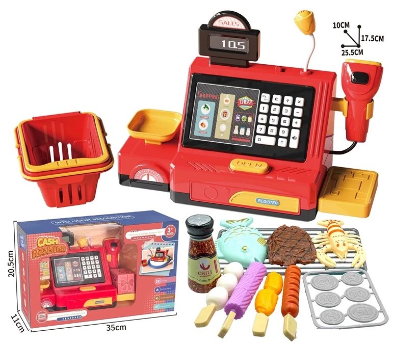 Rotaļlietu komplekts ar kases aparātu