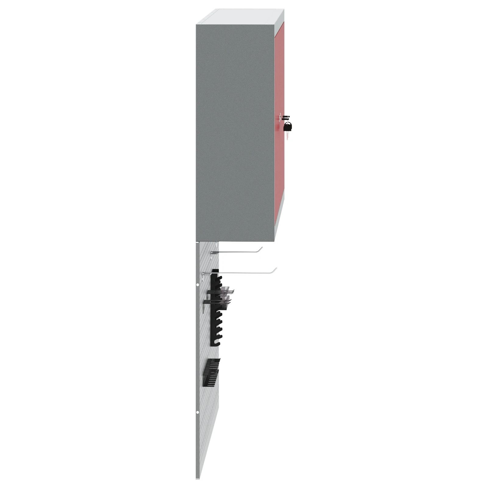 - Funkcionālais dizains un stils: Sienā fiksētais skapis atbrīvo grīdu. Ideāls risinājums darbnīcām un garāžām, kur nepieciešama kārtība.