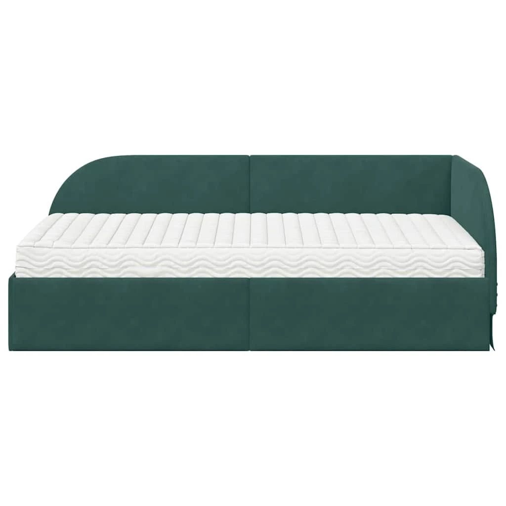 vidaXL Stūra gultas rāmis ar matrači ar galvas klāju 2 pcs Zaļa Samts