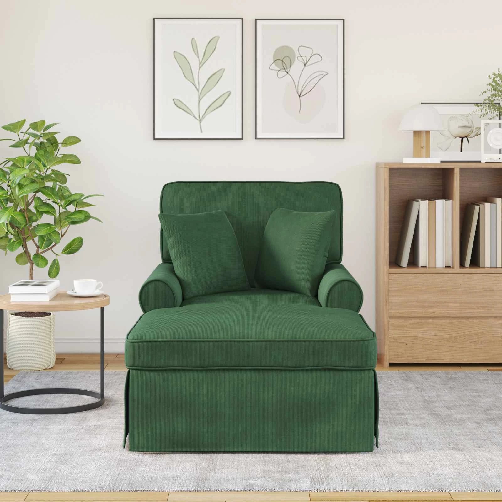 vidaXL Šezlongs ar svārkiem ar spilvenu Džungļu zaļa 91 x 157 x 91 cm