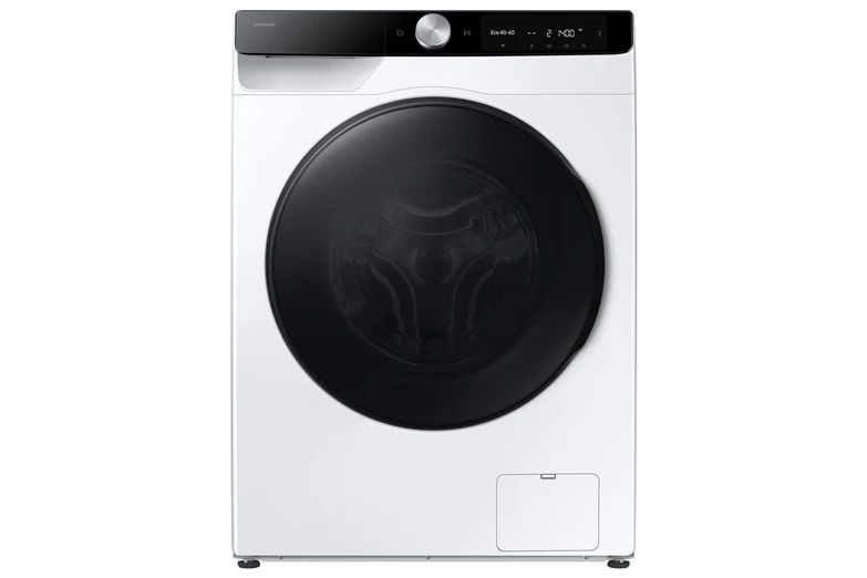 Produkta veids- Veļas mašīnas - žāvētāji. Zīmols- Samsung. Modelis- WD90DG6G94BKU4 . Platums- 60 cm. Dziļums- 48 cm. Augstums- 85 cm. Krāsa- Balta. Svars- 65 kg. Energoefektivitātes klase- A. Elektriskā dzinēja tips- Bezsuku. Ūdens patēriņš ciklā- 80 l. Centrifūgas efektivitātes klase- B. Mazgāšanas efektivitātes klase- B. Veļas ietilpība- 9 kg. Žāvēšanas jauda- 5 kg. Centrifūgas apgriezieni. apgr./min- 1400. Vadība- Mehānisks. Elektroniska. Viedtālrunis. Programmu skaits- 25. Mazgāšanas programmas- Higiēnas tvaika programma. AirWash. Mazgāšanas un žāvēšanas programma. Eco 40-60. Ātra mazgāšana. Vilnas mazgāšanas programma. Kokvilna. Sintētika. Sporta. Jaukts. Krāsains. Noskalošana un izgriešana. Delikāta programma. Virsdrēbju programma. Dvieļu mazgāšanas programma. Gultas veļas mazgāšanas programma. Ekrāns- Jā. Ekrāna tips- LED. Trokšņa līmenis izgriešanas laikā- 72 dB. Aizsardzība pret ūdens noplūdi- Nē. Trokšņa līmenis žāvēšanas laikā- 72 dB. Programma starta atlikšanai- Jā. Bērnu drošības funkcija- Jā. Obligātā garantija- 24 mēn. Ūdens patēriņš- 50 l. Žāvēšana- Jā. Energoefektivitātes klašu skala- A - G.