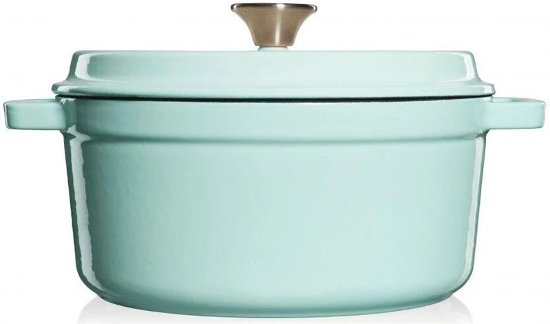 Zīmols- Grand feu. Garums- 26 cm. Platums- 26 cm. Augstums- 17 cm. Diametrs- 26 cm. Krāsa- Gaiši zila krās.. Materiāls- Čuguns. Papildus informācija- Tilpums: 4.7 l. Svars: 5.8 kg.