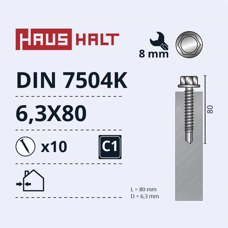 Pašvīdēšanas skrūves Haushalt. DIN 7504K. 6.3 x 80 mm. 10 gab.