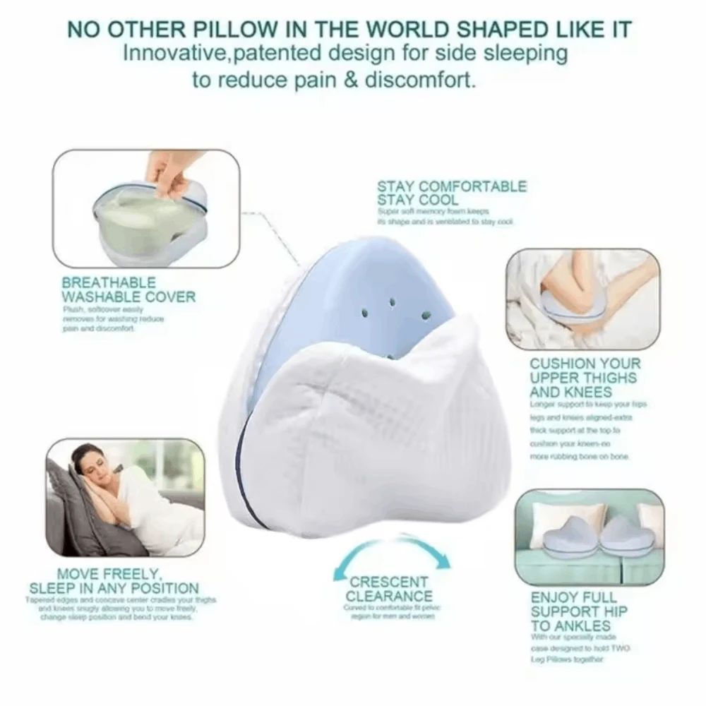 - Diskomforta mazināšana: Atbrīvojieties no kāju diskomforta, išiasa un muguras lejasdaļas sāpēm, izlīdzinot mugurkaulu ar Memory Foam ceļgalu spilvenu.