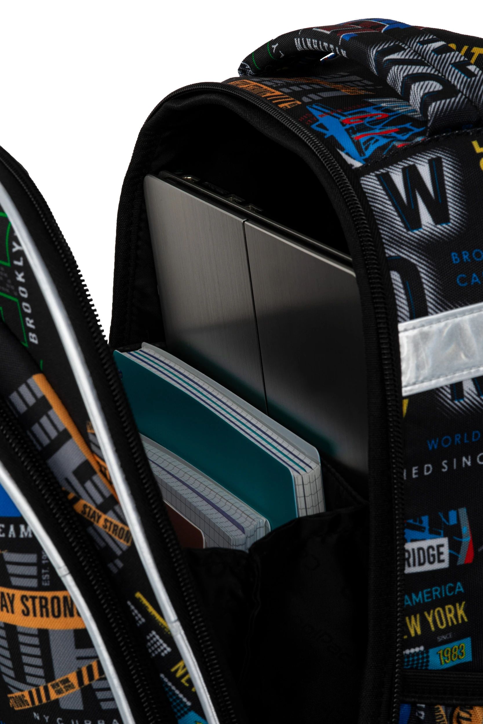 Zīmols- CoolPack. Artikuls- F015673. Garums- 29 cm. Platums- 16 cm. Augstums- 40 cm. Svars- 0.995 kg. Krāsa- Melna, Daudzkrāsaina. Sekciju skaits- 2. Ergonomiska mugursoma- Jā. Mīkstas lences- Jā. Izturīgs pret mitrumu- Jā. Atstarojošās detaļas- Jā. Nodalījums datoram- Nē. Obligātā garantija- 24 mēn.