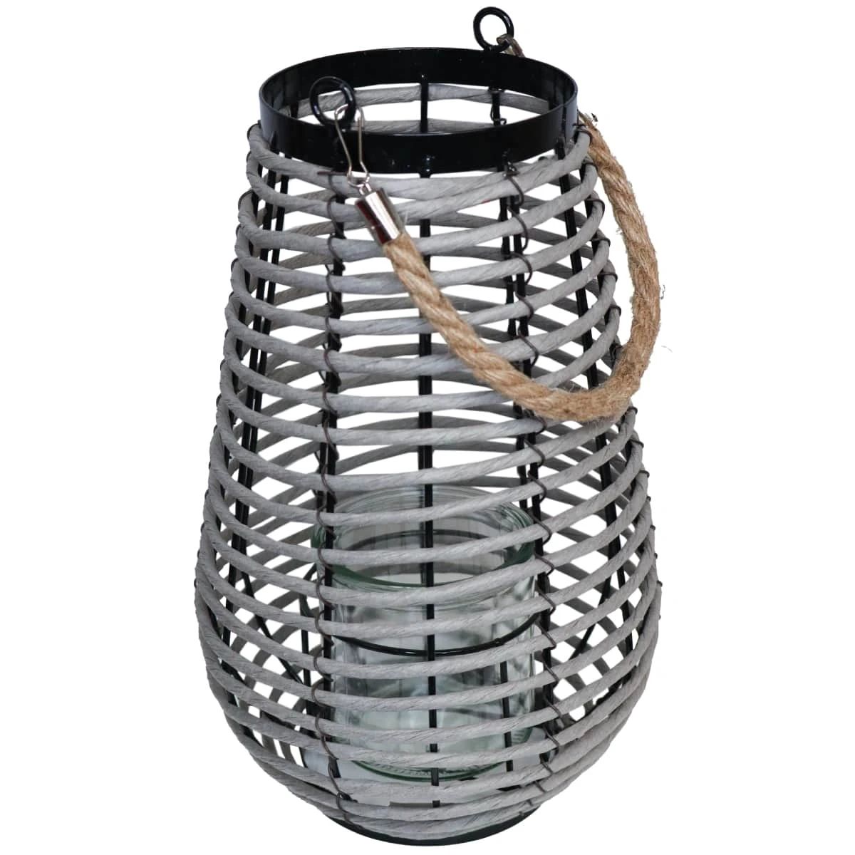 Laterna pīta ar stikla glāzi 21x31cm, pelēka