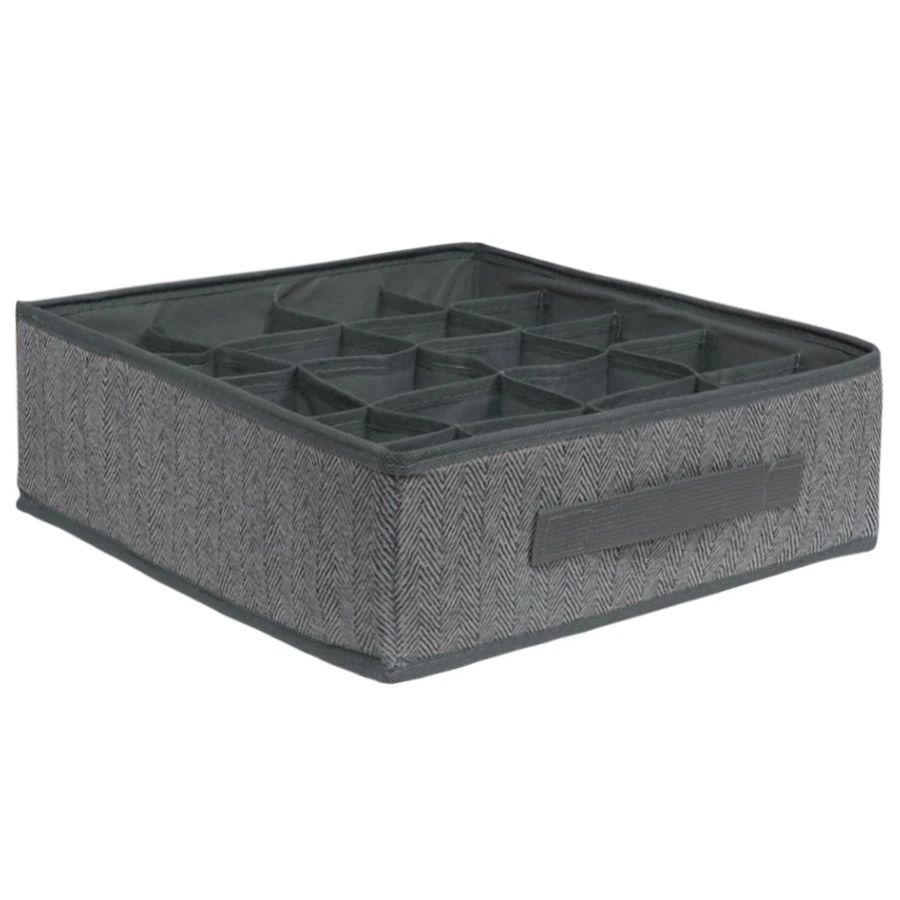 Besk uzglabāšanas kaste pelēkā krāsā ar nodalījumiem ir praktisks un kārtību uzturošs risinājums sīku priekšmetu organizēšanai. Kastei ir 20 iedalījumi, kas ir ideāli piemēroti apakšveļas, zeķu vai citu mazu aksesuāru uzglabāšanai. Tā ir izgatavota no elpojoša un putekļus izolējoša materiāla, kas pasargā saturu no putekļiem un ir viegli kopjams. Tās atlocāmā konstrukcija ļauj ietaupīt vietu, kad kaste netiek izmantota. Izmērs 32 x 32 x 11 cm.