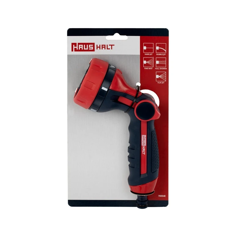 Zīmols- Haushalt. Artikuls- 76554E. Krāsa- Zila, Sarkana. Materiāls- Plastmasa. Sprauslas tips- Manuāli. Funkciju skaits- 5. Obligātā garantija- 24 mēn.