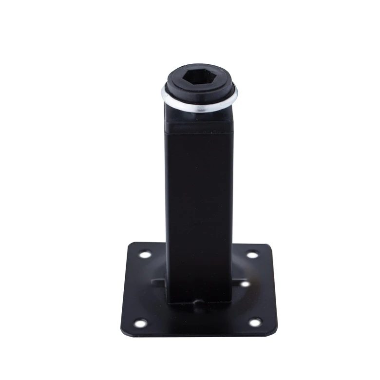 Produkta veids- Mēbeļu kāja. Zīmols- Haushalt. Artikuls- FT-517 . Augstums- 10 - 10cm. Garums- 2.5 cm. Platums- 2.5 cm. Krāsa- Melna. Materiāls- Metāls. Pārklājums- Krāsots. Stiprinājuma veids- Pieskrūvēt skrūves. Regulējams augstums- Nē.