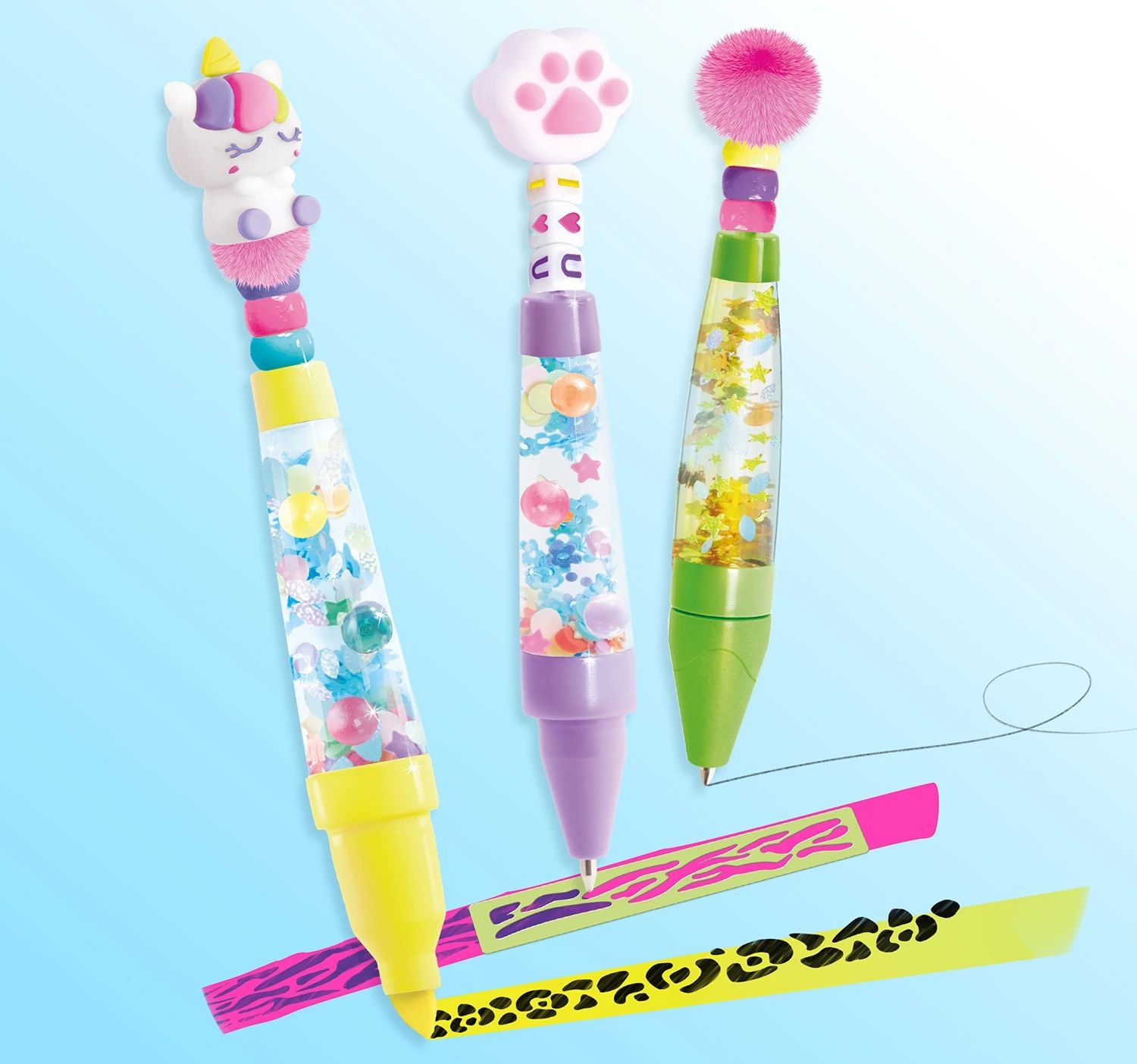 Izveido savu paštaisīto pildspalvu un marķieru kolekciju! Izmanto "rūpnīcu", lai uzpildītu rakstāmrīkus, pievienotu ūdeni un dekorācijas, un personalizētu tos līdz pat dzēšgumijai! Izkrāšņo 8 pildspalvas un marķierus, izmantojot dažādos komplektā iekļautos piederumus.