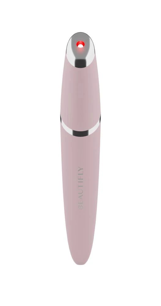 Discover a new level of massage Eye massager with intelligent induction function. The small, ergonomic shape fits perfectly in your hand and is easy to carry. Effectively relieves tired and puffy eyes and provides a feeling of relaxation. Power B-Sensi from the BEAUTIFLY brand is a face massager with a power of 0.75 W. Compact and easy to store even on the go. It measures only 13.2 x 2.2 x 2.2 cm. Its vibration frequency is 12000 rpm, and the charging time is about 4h. Brightens up your skin B-Sensi combines the function of a thermal massage, relaxing the eye area. High vibration frequency combined with red light perfectly smooth and care for photons thin and sensitive skin around the eyes. Use it along with with your favorite eye cream. High quality workmanship Your skin It will become radiant, smoother and brighter. Unique Elegant design, easy to carry, provides Comfortable and gentle eye massage. Step 1 Apply an appropriate amount of eye cream to previously cleansed skin, spread it evenly. Step 2 Touch the induction strip and place the massage head against the skin, it vibrates automatically. Step 3 Use the head for massage as shown in the drawing. Step 4 After use, wipe dry or dry massage head paper towel. Features: Red photon light Thermotherapy at approx. 40°C Smooths and firms the delicate skin around the eyes Helps reduce puffiness around the eyes Ultrasonic vibration massage refreshes and revitalizes the skin Minimizes the appearance of dark circles Inductive operation Technical data Power: 0.75W Rated voltage: 4.2V Operating voltage: 3.6-4.2V Working current: 250mA Temperature: 40°C Vibration frequency: 12,000 rpm Charging time: 4 hours Dimensions: 132 x 22 x 22mm Material: zinc alloy, ABS