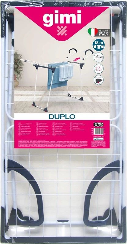 Zīmols- Gimi. Artikuls- 10166200. Garums- 1.8 m. Platums- 0.57 m. Augstums- 0.905 m. Garums salocītā veidā- 0.57 m. Platums salocītā veidā- 0.125 m. Veļas žāvētāja garums- 18 m. Svars- 3 kg. Krāsa- Sudraba krās.. Materiāls- Tērauds. Žāvētāja veids- Uzliekams. Piemērots lietošanai- Ārā. Iekšā. Maksimālā slodze- 17 kg. Obligātā garantija- 24 mēn. Papildus informācija- Produkta izmēri: 180x57x90.5 cm. Iepakojuma izmēri: 57x12.5x106 cm. Svars: 3.2 kg. Maksimālā slodze: 17 kg..