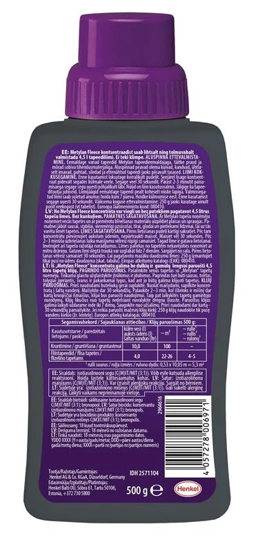 Zīmols- Metylan. Tilpums- 0.5 l. Līmes veids- Šķidrums. Papildus informācija- No Metylan Fleece koncentrāta var vienkārši un bez putekļiem sagatavot 4.5 l bezkunkuļu tapešu līmi. Paredzēts galvenokārt flīša tapetēm..