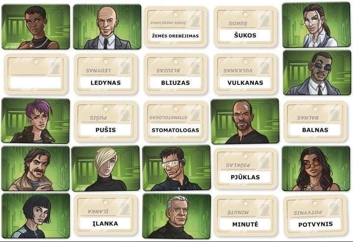 Zīmols- Brain Games. Spēles valoda- Lietuviešu. Dalībnieku skaits- 2 - 4. Brīdinājums par rotaļlietām- Nav piemērots bērniem. kas jaunāki par trim gadiem.. Ieteicamais vecums no- 11. g.. Obligātā garantija- 24 mēn. Garantija juridiskām personām- 12 mēn. Papildus informācija- Codenames Duet ir vairākkārt godalgotā Codenames turpinājums. kas izveidots īpaši diviem spēlētājiem! Codenames Duet ir sadarbības misija ar pat vairākiem sarežģītības līmeņiem... Codenames Duet dod diviem cilvēkiem komandas izaicinājumu identificēt savus aģentus! Codenames Duet saglabā tos pašus elementus no vairākām godalgotajām spēlēm Codenames — jums ir jāsniedz viena vārda norāde. lai palīdzētu citiem identificēt jūsu aģentus (vārdus) no uz galda esošajām kartēm. taču tagad jūs strādāsit kopā. lai atrastu abu spēlētāju aģenti. Ja vēlaties papildu izaicinājumu. spēle pievieno arvien sarežģītāku kampaņu. kas ilgs vairākas spēles sesijas... Spēlētāji pēc kārtas dod viens otram viena vārda norādes. kamēr otrs spēlētājs mēģina uzminēt vārdu uz galda kārtīm. Abu spēlētāju mērķis ir palīdzēt otram atrast "pareizos" vārdus starp 25 sniegtajām kārtīm. Spēlētāji uzvar vai zaudē kopā. Spēlētājiem vienā gājienā ir atļauts tikai viens vārds un viens skaitļa pavediens: vārdam jāattiecas uz vairākiem vārdiem uz kārtīm. un skaitlim jānorāda. cik kāršu attiecas uz šo vārdu. Diemžēl jums ir ierobežots kustību skaits. kas padara spēli vēl saistošāku un dinamiskāku..
