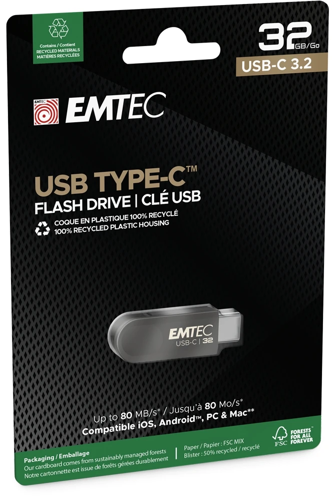 Pieejams ar 32, 64, 128 un 256 GB ietilpību