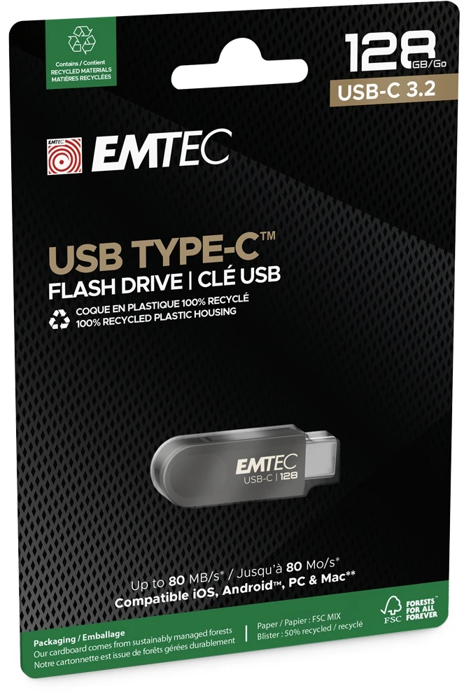 Pieejams ar 32, 64, 128 un 256 GB ietilpību