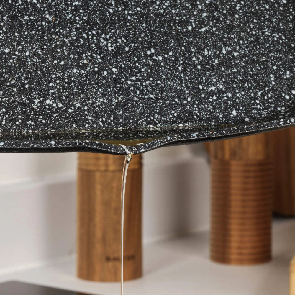 Šī panna ir izgatavota no korozijas un skrāpējumu izturīga kalta alumīnija ar megastone pārklājumu, kas ir 9 reizes izturīgāks nekā standarta nepiedegošais pārklājums.