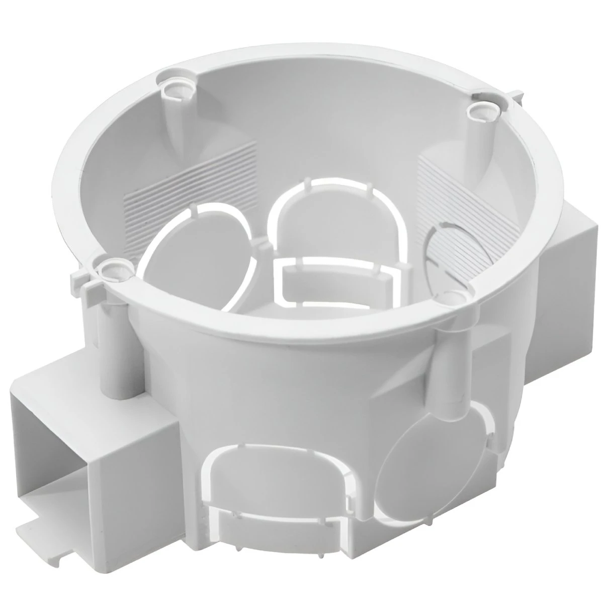 1 - vietīga plastmasas montāžas kārba ar vietu skrūvēm (skrūves nav iekļautas komplektā) betonam. Ārējais diametrs 63 mm, ārējais dziļums 43 mm, iekšējais dziļums 41 mm, platums 81 mm, attālums starp skrūvēm 60 mm. Paredzēta kabeļiem un caurulēm ar diametru 20 mm. Aizsardzības pakāpe IP30. Temperatūras izturība 650°C. Ievadu skaits 7 ar iespēju ievadi veikt arī no aizmugures. Krāsa balta.