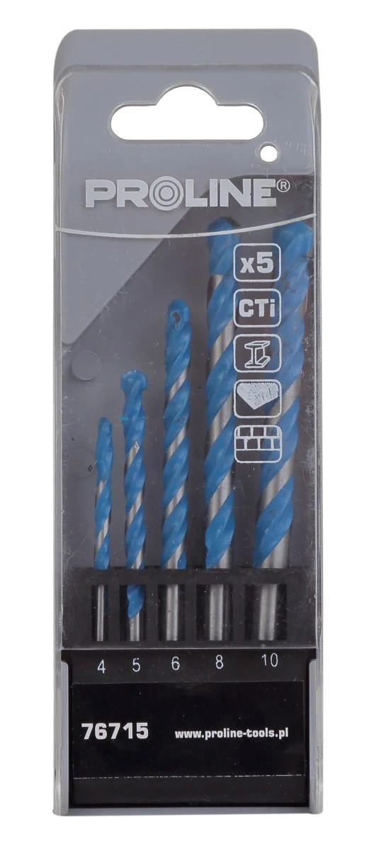 Universālu oglekļa - titāna urbju komplekts. Komplektā urbji ar diametru 4 mm, 5 mm, 6 mm, 8 mm, 10 mm.