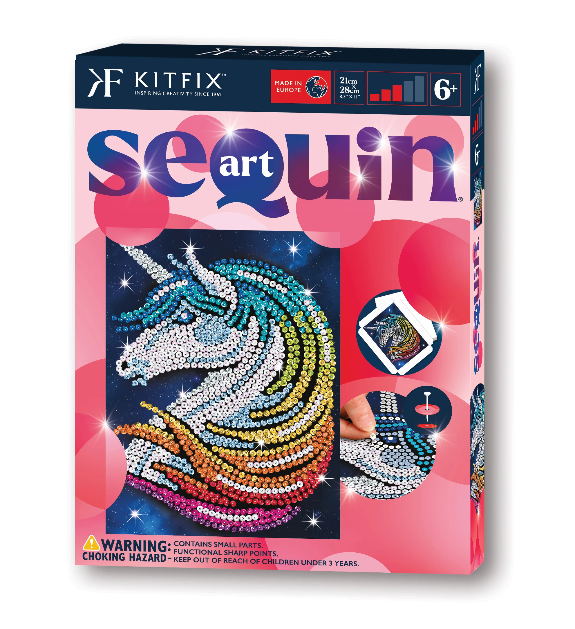 KITFIX Amatniecības komplekts Sequin Art Red spīdumiņu māksla, Vienradzis ar zvaigznītēm