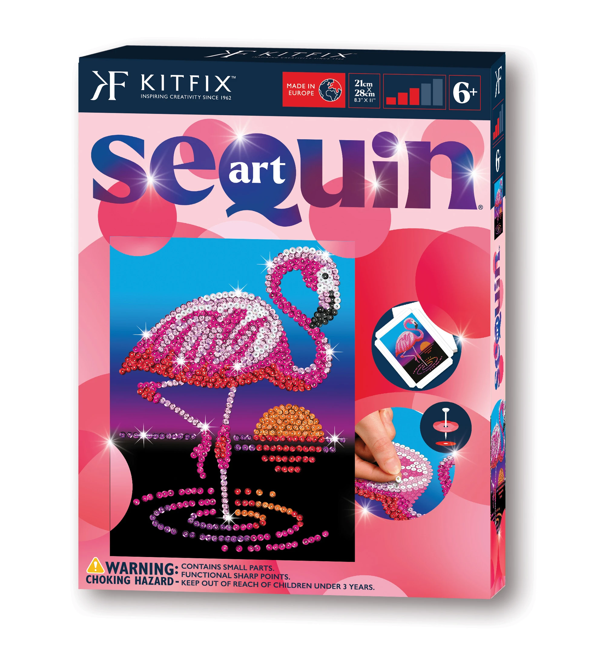 KITFIX Amatniecības komplekts Sequin Art Red spīdumiņu māksla, Flamingo Frenkijs