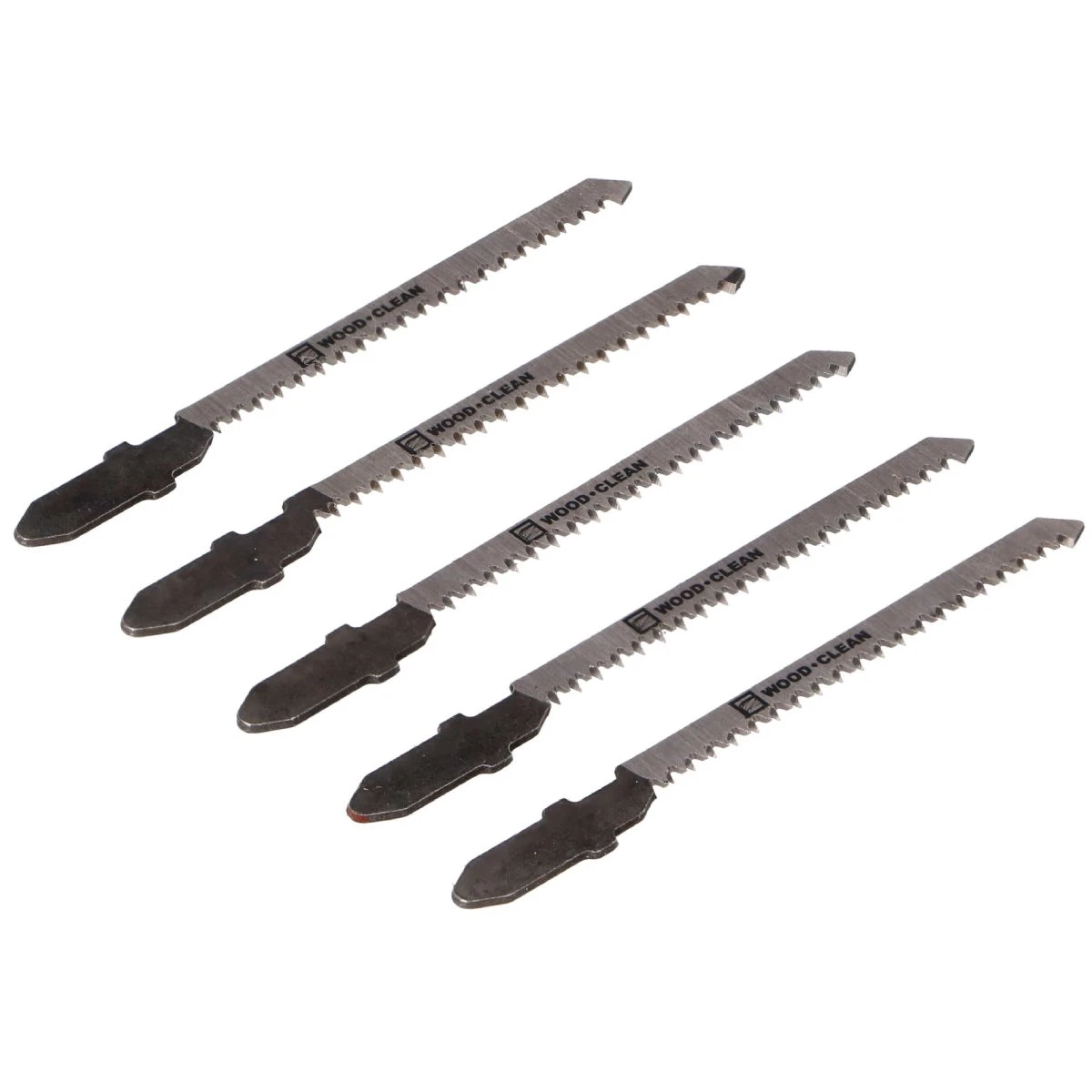 Figūrzāģu asmeņi izgatavoti no oglekļa tērauda. Piemēroti mīkstu materiālu, piemēram, koka, saplākšņa, lamināta u.c. zāģēšanai. Saderīgi ar AEG, BOSCH, DEWALT, ELU, FESTO, HITACHI, KRESS, MAKITA, METABO, SKIL figūrzāģiem. Kontūru zāģēšanai mīkstā un cietā kokā, saplāksnī, laminētās plātnēs, kokšķiedru plātnēs, plastmasā. Zobi slīpēti, smaili. Zāģēšanas kvalitāte vidēja. Asmens garums 77 mm, TPI 20. Komplektā 5 gb.