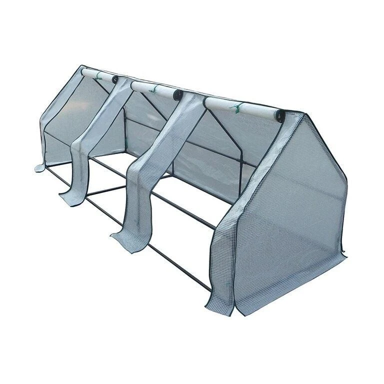 Zīmols- Garden Center. Krāsa- Caurspīdīga. Svars- 4.9 kg. Garums- 270 cm. Platums- 95 cm. Augstums- 95 cm. Platība- 2.57 m². Materiāls- Politelēns (PE). Rāmja materiāls- Metāls. Pārklājuma materiāls- Polietelēns. Arku skaits- 4. Logu skaits- 3. Obligātā garantija- 24 mēn. Papildus informācija- 3 logi Iepakojuma izmērs: 270x95x95 cm, Svars: 4.9kg .