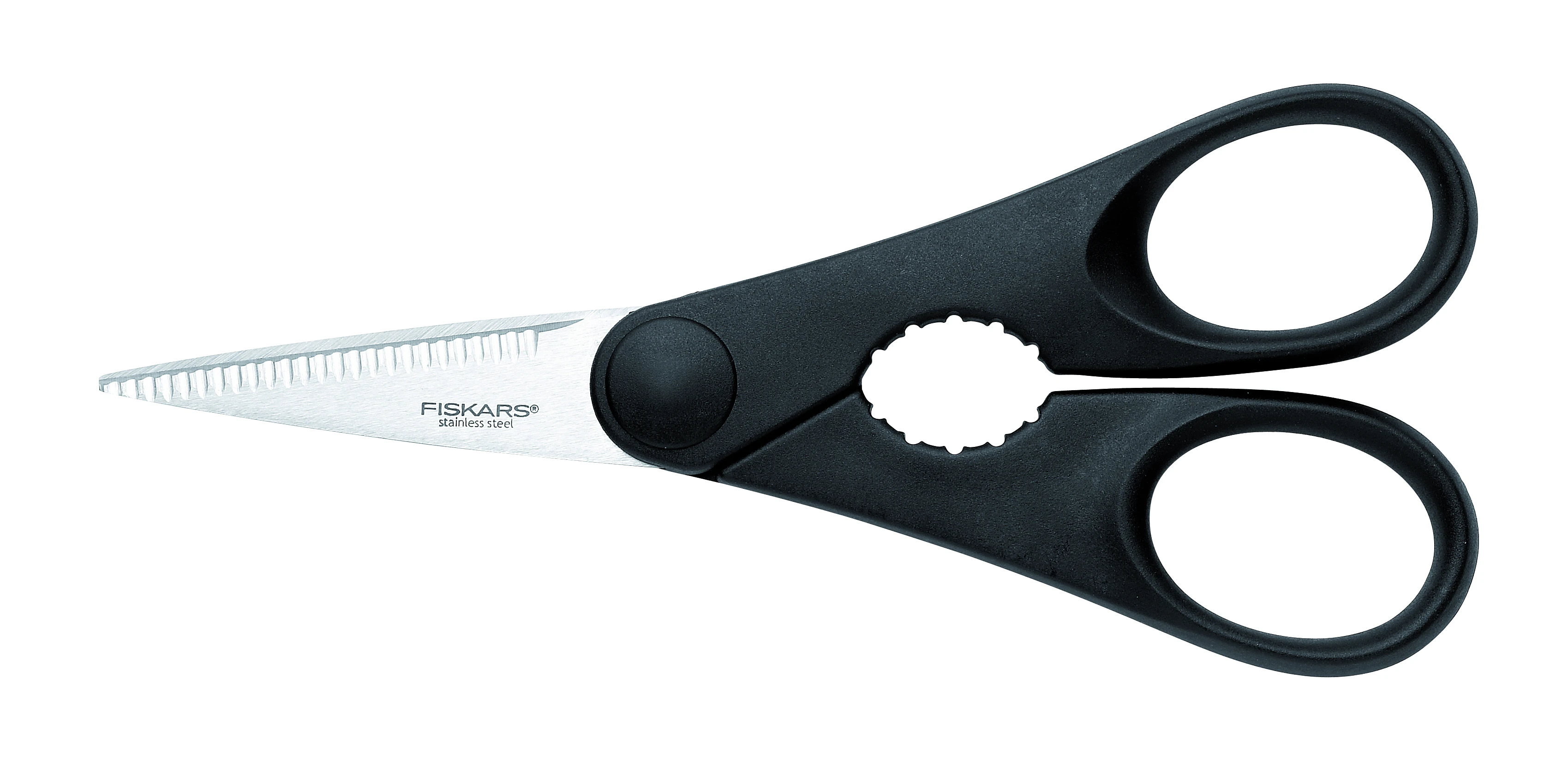 Šķēres ar integrētu pudeļu attaisāmo un rievotu apakšējo asmeni, kas padara griešanu vieglāku. Asmeņi izgatavoti no nerūsējošā tērauda ar cietību HRC 55. Var mazgāt trauku mazgājamā mašīnā. Kopējais garums 20 cm, asmens garums 7 cm, rokturu platums 8.7 cm, svars 112 g.