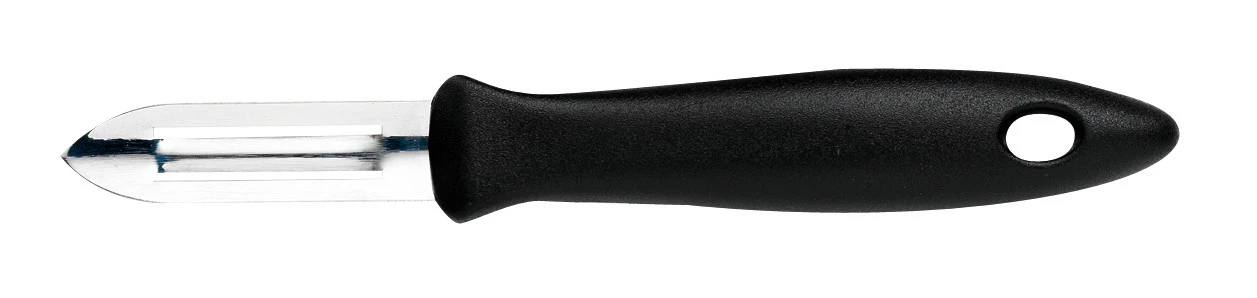Piemērots kartupeļu, burkānu un citu dārzeņu un augļu mizošanai. Asmens izgatavots no nerūsējoša tērauda, ergonomiskais rokturis no triecienizturīga polipropilēna. Var mazgāt trauku mazgājamā mašīnā. Asmens garums 6 cm.