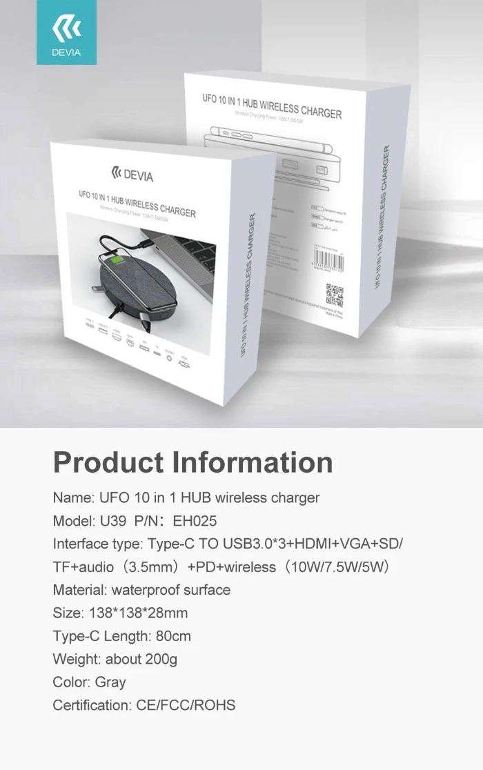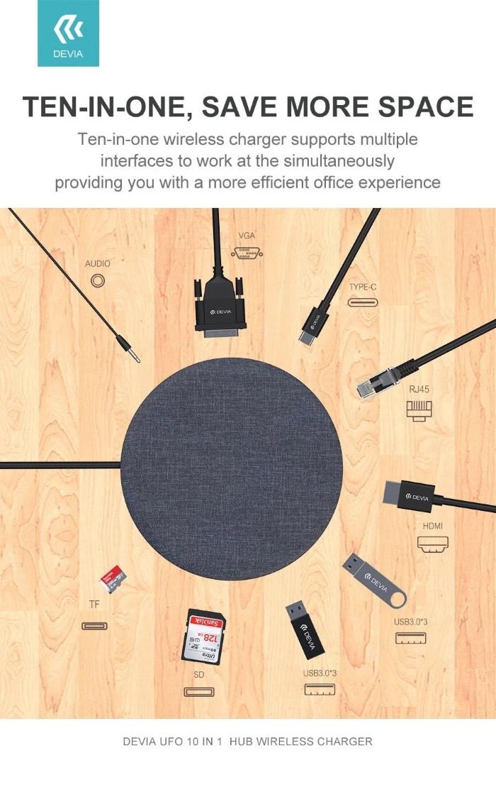Devia UFO 10in1 HUB wireless charger gray