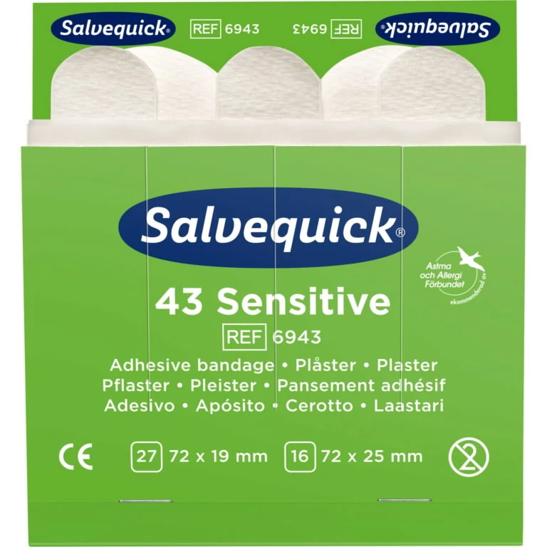 Augstas kvalitātes Salvequick Sensitive plāksteri jutīgai ādai. Hipoalerģiskie plāksteri ir ērti lietojami un elastīgi.