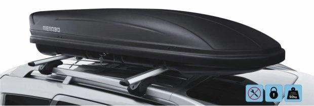 Zīmols- Menabo. Tilpums- 400 l. Maksimālā slodze- 50 kg. Svars- 13.2 kg. Montāžas veids- U-veida skrūves. Atvēršanas veids- Vienpusēja. Garums- 164 cm. Platums- 79 cm. Augstums- 37 cm. Krāsa- Melna. Materiāls- Plastmasa. Papildus informācija- Ar slēdzeni.