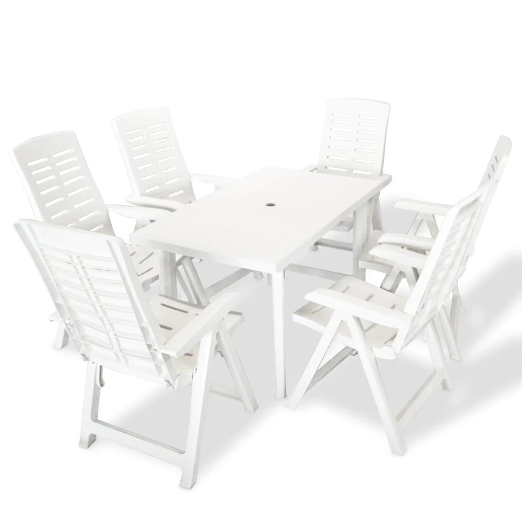 vidaXL 7-daļīgs dārza mēbeļu komplekts, plastmasa, balts