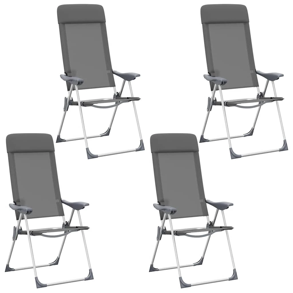 vidaXL kempinga krēsli, 4 gab., pelēki, alumīnijs, salokāmi