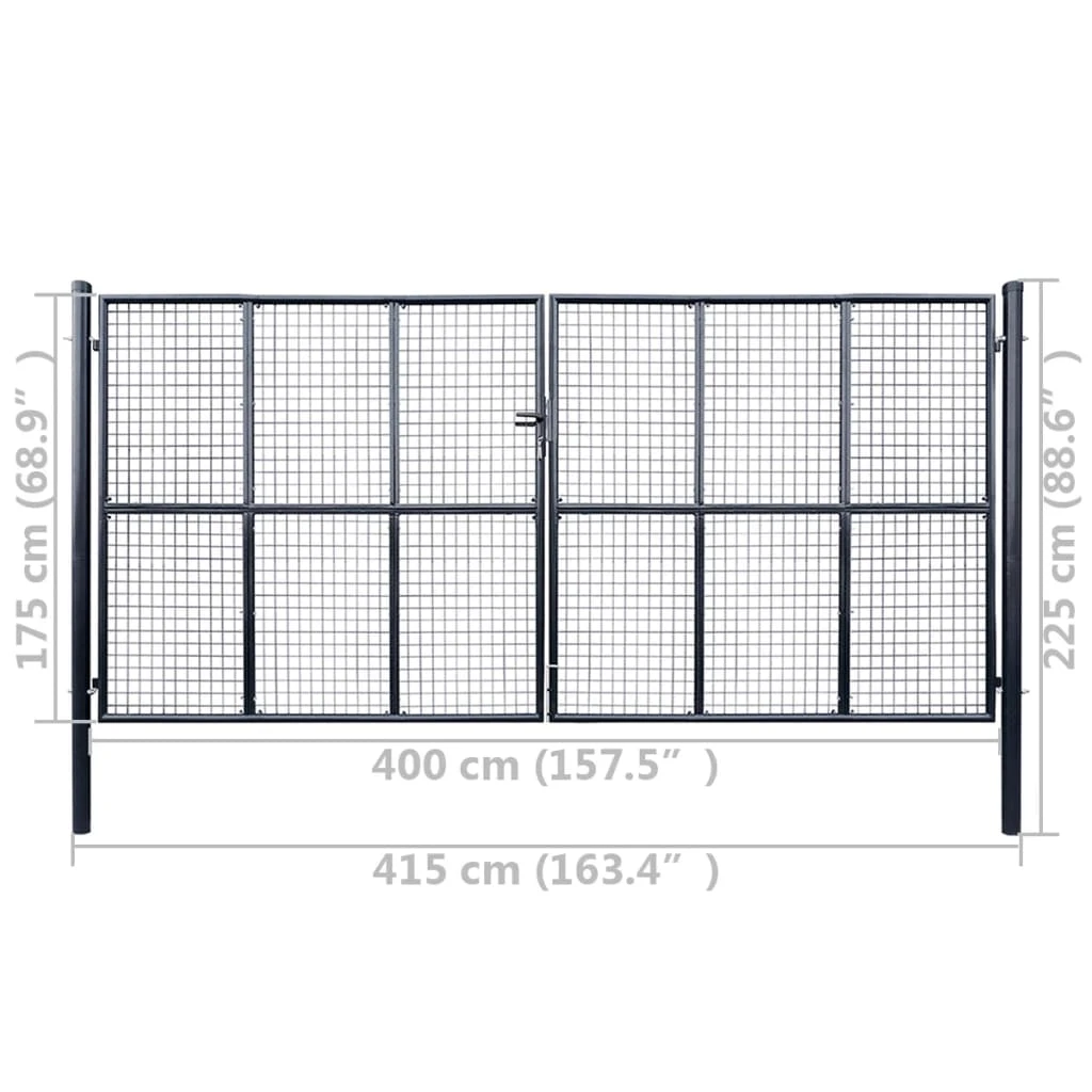 vidaXL dārza vārti, sieta, cinkots tērauds, 400x175 cm, pelēki